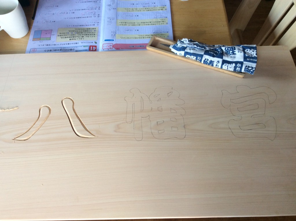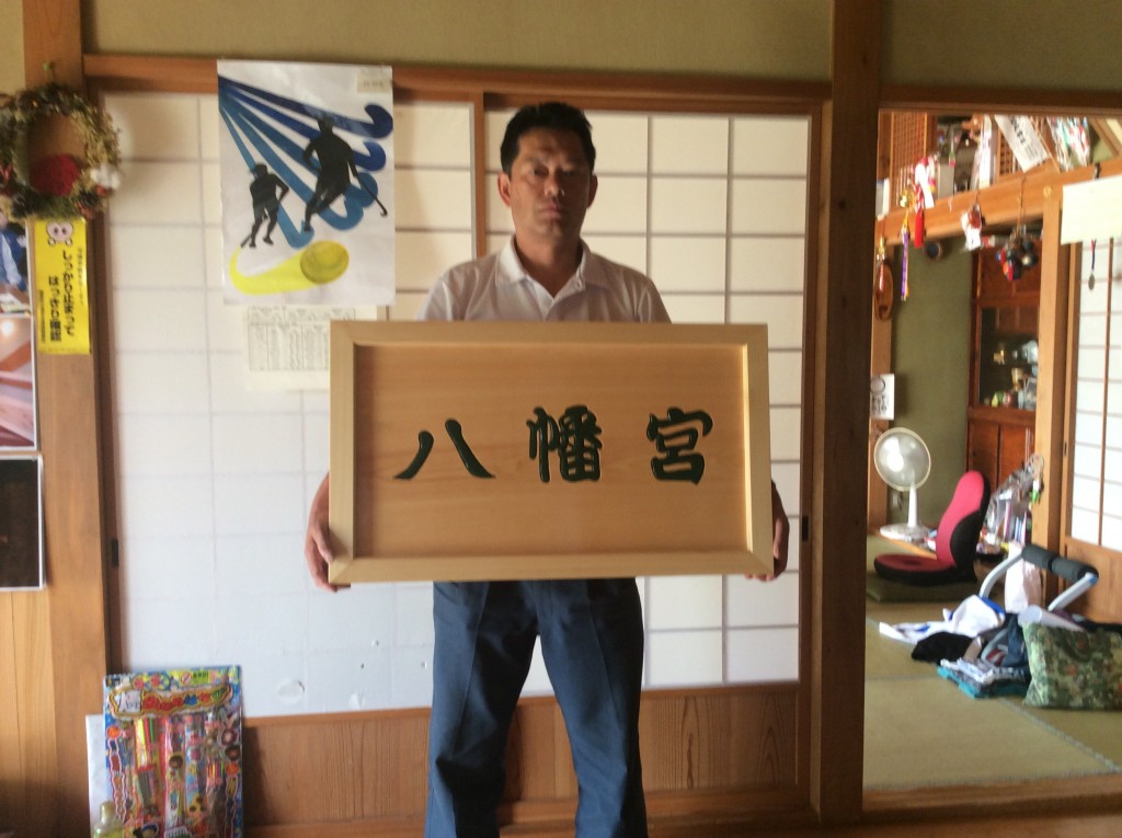 「幡」の字のどこが抜けていたかわかるでしょうか? 親に記念撮影を依頼したところピンボケの写真でした・・・ちょっと残念!ですが無事に完成してお渡ししてきました!