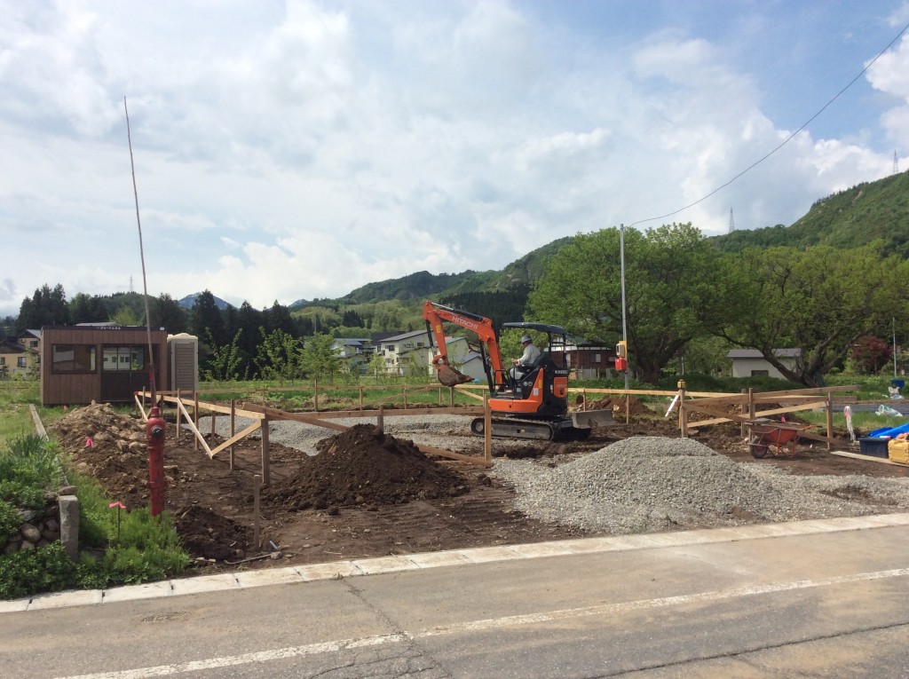 建物を建てるにはやわらかく雨が降るとどろどろになる「表土」を はがしています