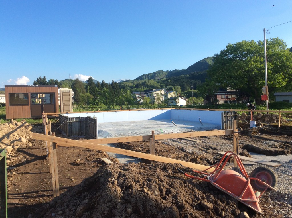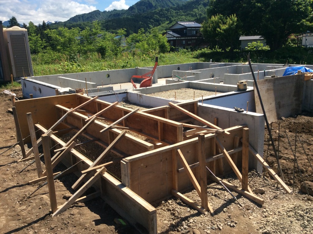 基礎の立ち上がりの枠を組んでコンクリートを流しました