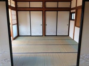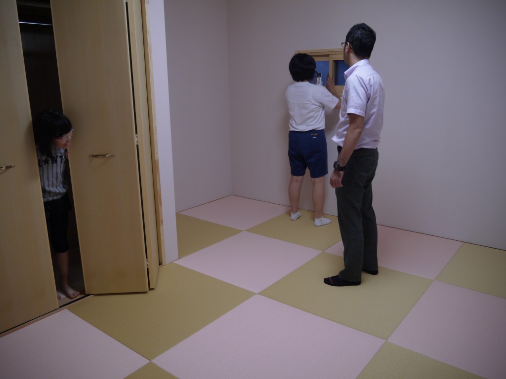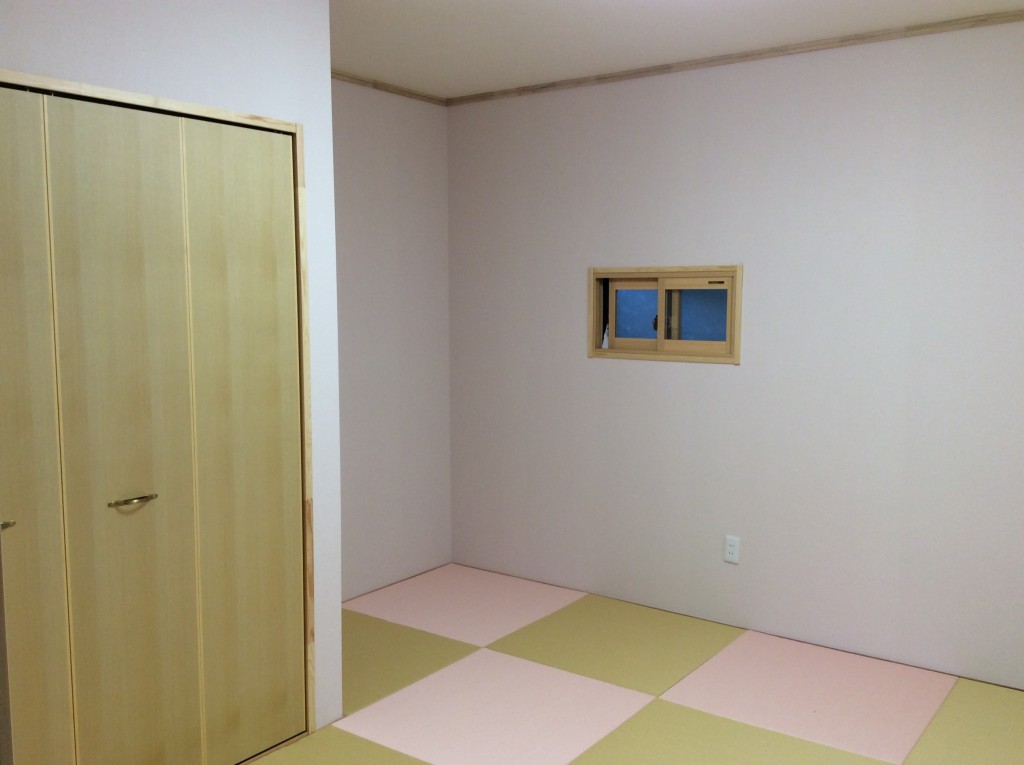 部屋はそれぞれカラフルな畳を2色にして花畑のような床に仕上がりました 写真ではわかりにくいかと思いますが、上と下の部屋は緑の色が少し違う畳を選んでます