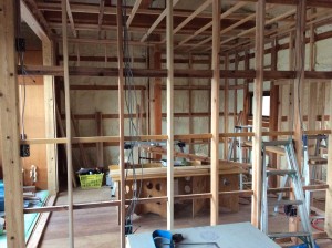 完成した内装をたしかめる家族の様子・・・ 子どもは狭い空間が楽しそうです!