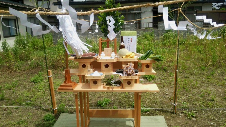 地鎮祭を行い土地の神様に工事の安全祈願お施主様の家内安全、家運隆盛を祈願しました