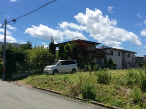 敷地が道路よりも高いので自動車の乗り入れを考えて地盤を一部カットしました