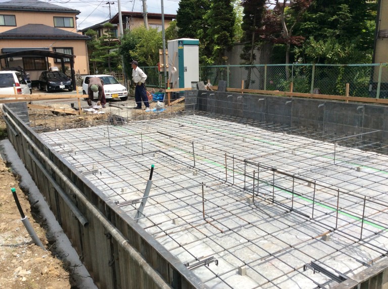 基礎工事 鉄筋を組み立てた様子です 後日、日本住宅保証機構の配筋検査を受けて「適合」の承認を受けました